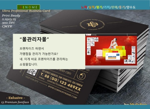 G E N O M E 노력/실적/평가/가치/판매/등기/양수도 “몰관리자몰” 프랜차이즈 하면서 가맹점들 관리가 가능한가요? 네. 이게 바로 프랜차이즈를 관리하는 쇼핑몰입니다.