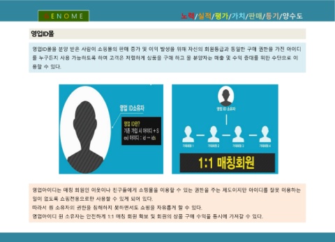 G E N O M E 노력/실적/평가/가치/판매/등기/양수도