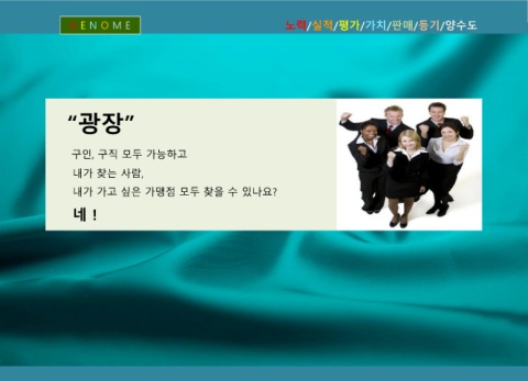 G E N O M E 노력/실적/평가/가치/판매/등기/양수도 “광장” 구인, 구직 모두 가능하고 내가 찾는 사람, 내가 가고 싶은 가맹점 모두 찾을 수 있나요? 네 !