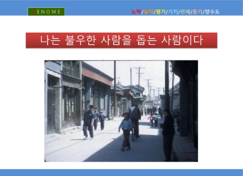 G E N O M E 노력/실적/평가/가치/판매/등기/양수도 나는 불우한 사람을 돕는 사람이다