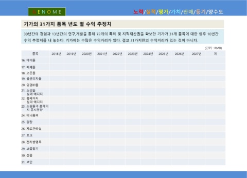 30년간의 경험과 13년간의 연구,개발을 통해 72개의 특허 및 지적재산권을 확보한 기가가 31개 품목에 대한 향후 10년간