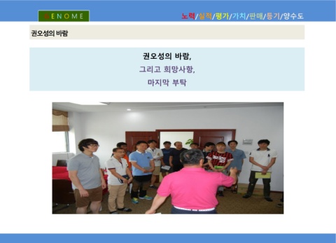 G E N O M E 노력/실적/평가/가치/판매/등기/양수도 권 오 성 의 바 람 권오성의 바람, 그리고 희망사항, 마지막 부탁