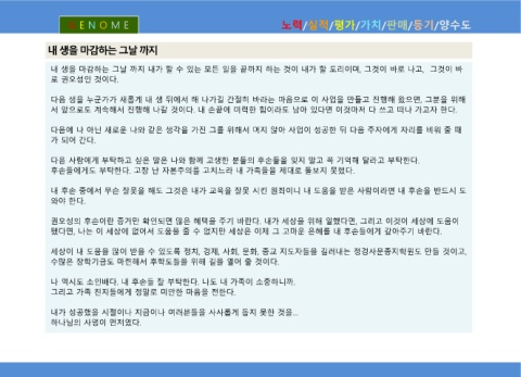 내 생을 마감하는 그날 까지 내가 할 수 있는 모든 일을 끝까지 하는 것이 내가 할 도리이며, 그것이 바로 나고, 그것이 바