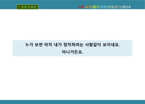 G E N O M E 노력/실적/평가/가치/판매/등기/양수도 누가 보면 마치 내가 정치하려는 사람같이 보이네요. 아니거든요.