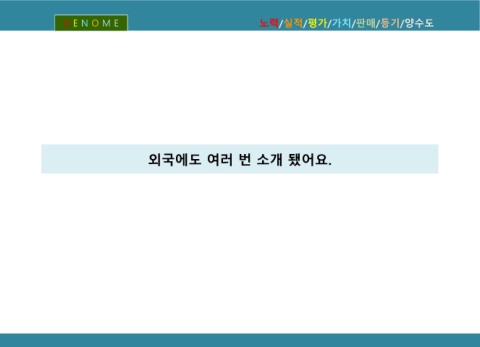 G E N O M E 노력/실적/평가/가치/판매/등기/양수도 외국에도 여러 번 소개 됐어요.