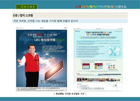 G E N O M E 노력/실적/평가/가치/판매/등기/양수도 잡 신 문 / 지 스 크 랩 국민 여러분, 신바람 나는 세상을 기가와 함께 만들어 갑시다. < 영남매일 기사와 조선일보 기사 >