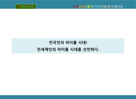 G E N O M E 노력/실적/평가/가치/판매/등기/양수도 전국민의 마이몰 시대! 전세계인의 마이몰 시대를 선언하다.