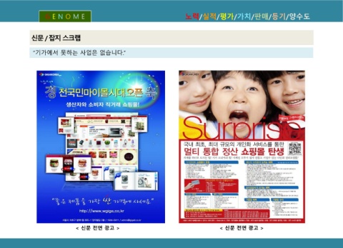 G E N O M E 노력/실적/평가/가치/판매/등기/양수도 잡 신 문 / 지 스 크 랩 “기가에서 못하는 사업은 없습니다.” < 신문 전면 광고 > < 신문 전면 광고 >