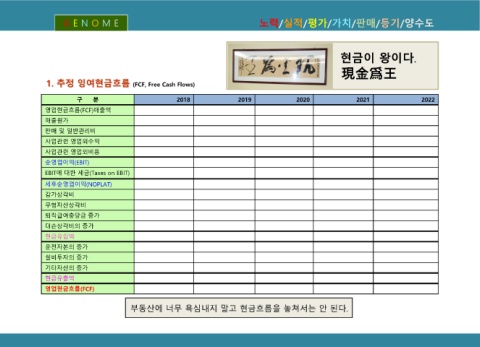 1. 추정 잉여현금흐름 (FCF, Free Cash Flows)