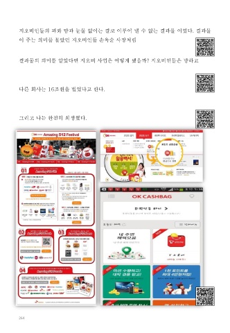 지오비인들의 피와 땀과 눈물 없이는 결코 이루어 낼 수 없는 결과물 이였다. 결과물 이 주는 의미를 몰랐던 지오비인들 손옥순 사장처럼 결과물의 의미를 알았다면 지오비 사업은 어떻게 됐을까? 지오비인들은 망하고 다른 회사는 16조원을 벌었다고 한다. 그리고 나는 완전히 희생했다. 264