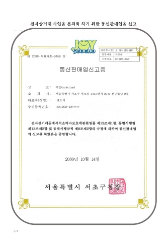 전자상거래 사업을 본격화 하기 위한 통신판매업을 신고 274