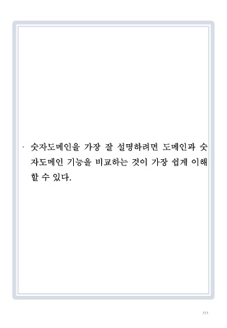 · 숫자도메인을 가장 잘 설명하려면 도메인과 숫 자도메인 기능을 비교하는 것이 가장 쉽게 이해 할 수 있다. 313