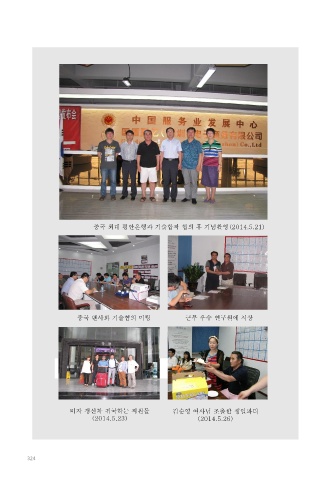 중국 최대 평안은행과 기술합작 협의 후 기념촬영(2014.5.21) 중국 밴사와 기술협의 미팅 근무 우수 연구원에 시상 비자 갱신차 귀국하는 직원들 김순영 여사님 조촐한 생일파티 (2014.5.23) (2014.5.26) 324