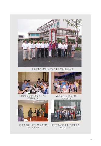 중국 강소성 경제기술개발구 현장 방문(2014.8.9) 선전시 한인회장 초청 저녁식사 MBC 황헌 보도국장 방문 (2014.8.13) (2014.8.18) 중국 중신그룹 천하이옌 회장 미팅 한국프랜차이즈협회 관계자 방문 (2015.1.15) (2015.1.21) 327
