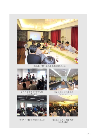 캄보디아 방문 세미나 개최(2015.3.10) 중국 우한대학 펑 총장 방문 프랜차이즈 세미나 개최 (2015.3.11) (2015.2.7) 중국지사 기술교육(2015.3.16) 서초포럼 권오석 회장 특강 (2015.2.18) 329