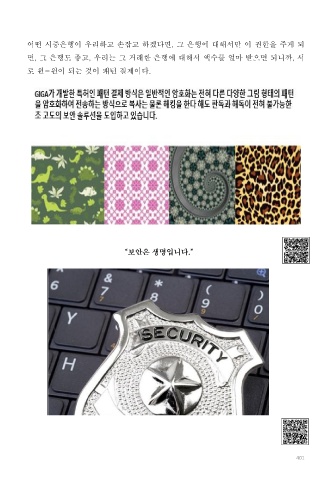 어떤 시중은행이 우리하고 손잡고 하겠다면, 그 은행에 대해서만 이 권한을 주게 되 면, 그 은행도 좋고, 우리는 그 거래한 은행에 대해서 액수를 얼마 받으면 되니까, 서 로 윈-윈이 되는 것이 패턴 결제이다. “보안은 생명입니다.” 401