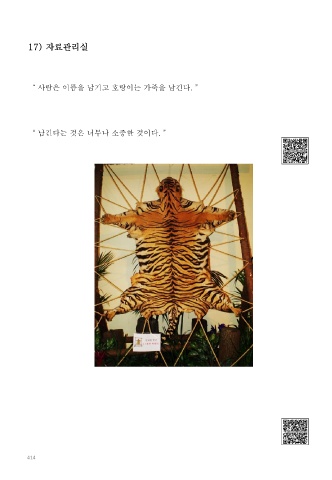 17) 자료관리실 “ 사람은 이름을 남기고 호랑이는 가죽을 남긴다. ” “ 남긴다는 것은 너무나 소중한 것이다. ” 414