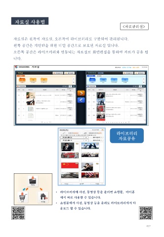 오른쪽 공간은 라이브러리와 연동되는 자료실로 화면편집을 통하여 자료가 공유 됩