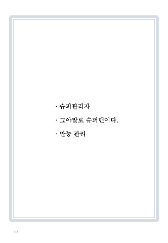 ·슈퍼관리자 ·그야말로 슈퍼맨이다. ·만능 관리 418