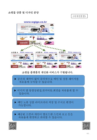 쇼핑몰 상품 및 디자인 분양 <디자인통합> 쇼핑몰 플랫폼의 개인화 서비스가 구현됩니다. ▶ 공간의 제약이 없이 클릭만으로 메인 및 상품 페이지를 자유롭게 구사할 수 있습니다. ▶ 이미지 및 동영상편집,위치이동,회전을 자유롭게 할 수 있습니다. ▶ 메인 노출 상품 라이브러리 저장 및 수시로 변경이 가능합니다. ▶ 제공된 스킨과 개인이 업로드한 스킨과 로고 등을 자유롭게 변경하고 관리할 수 있습니다. 455