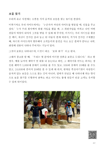 그것이 보물로 나타나는데, 이것이 바로 ‘보물 찾기’라고 한다.