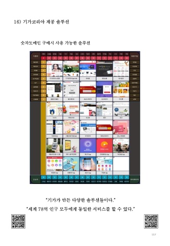 16) 기가코리아 제공 솔루션 숫자도메인 구매시 사용 가능한 솔루션 “기가가 만든 다양한 솔루션들이다.” “세계 78억 인구 모두에게 동일한 서비스를 할 수 있다.” 557