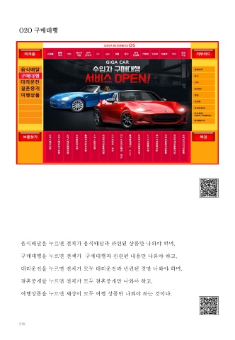 O2O 구매대행 음식배달을 누르면 전체가 음식배달과 관련된 상품만 나와야 하며, 구매대행을 누르면 전체가 구매대행과 관련된 내용만 나와야 하고, 대리운전을 누르면 전체가 모두 대리운전과 관련된 것만 나와야 하며, 결혼중개를 누르면 전체가 모두 결혼중개만 나와야 하고, 여행상품을 누르면 세상이 모두 여행 상품만 나와야 하는 것이다. 570