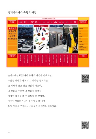 멀티비즈니스 유형의 사업 차량판매 화장품 가전제품 패션 숫자도메인 UI상에서 유형의 사업을 선택하면, 수많은 회사가 나오고 그 회사를 선택하면 그 회사가 갖고 있는 상품이 나오며, 그 상품을 누르면 그 상품과 관련된 자세한 내용을 볼 수 있도록 한 것이다. 그것이 멀티비즈니스 속에서 동일 UI에 동일 상품을 구축하여 소비자의 편리성을 갖추었다. 578