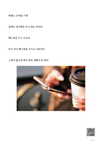현대는 모바일 시대 집에는 집사람을 두고 와도 되지만 핸드폰을 두고 나오면 다시 가서 핸드폰을 가지고 나와야지 그렇지 않으면 하루 종일 생활이 안 된다. 637