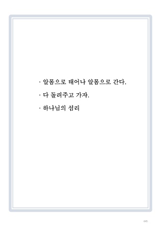 ·알몸으로 태어나 알몸으로 간다. ·다 돌려주고 가자. ·하나님의 섬리 645