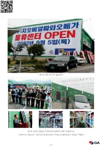 <경기도 광주 8만가지 물류센터> 경기도 광주에 건립된 지오비(GOB) 알파와 오메가 유통단지는 국내에서는 처음으로 시작한 창고형 할인매장 아이템으로 물류유통의 혁신을 가져왔다. - 310 -